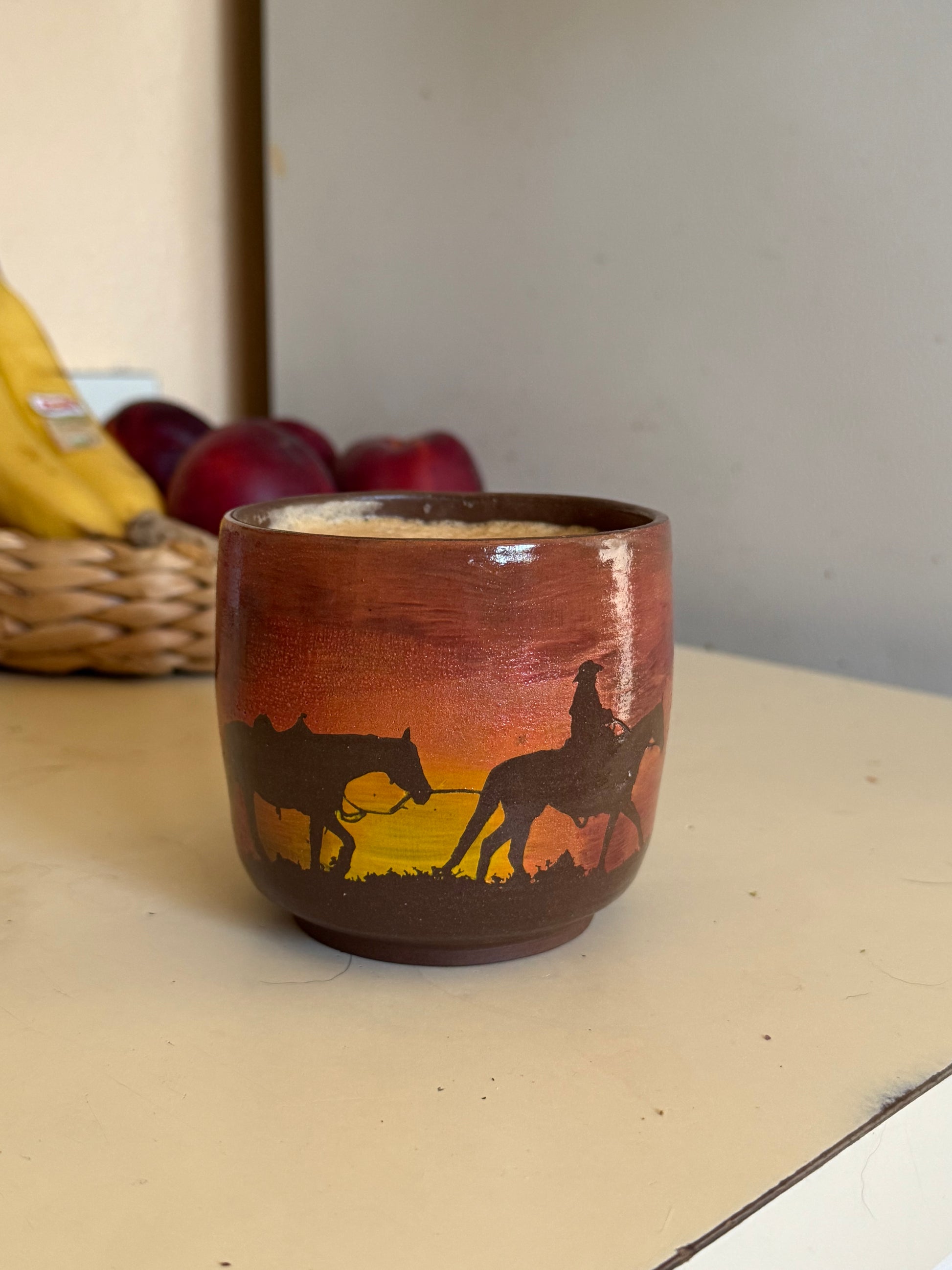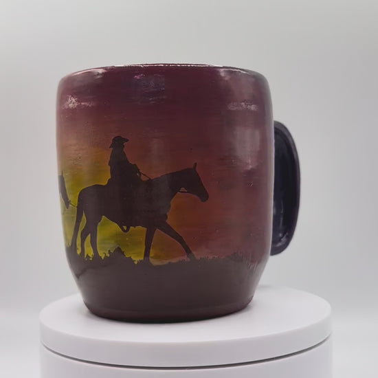 Each mug is hand-thrown on the pottery wheel, hand-carved, and hand-painted by the artist. No two mugs are exactly alike—just like no two sunsets are the same.